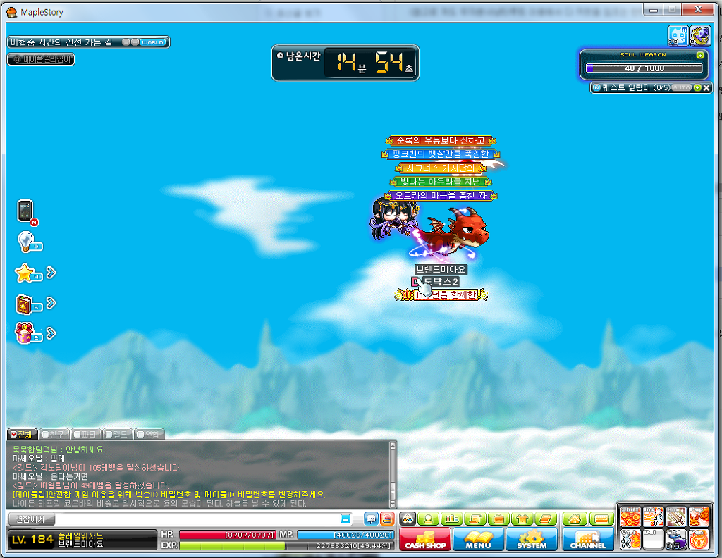 근데 문제는 디멘션게이트가 끝나면 업할장소가 없다는거...결국 130~140사냥터인 레드스티지가서 걍 닥사하면서 업하시거나