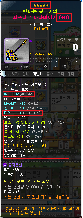 마력과 약간의 스텟이 올랐습니다.(놀장은 밸붕템이고 초보분들은 할수없는거기때문에(저도못함) 설명은 안하겠습니다)