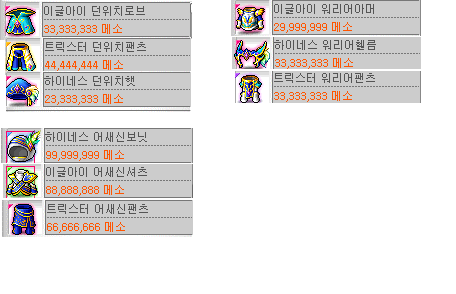 (저도 플위/팔라딘이라 전사/법사템은 가격잘 아는데 캐시/해적/도적템 가격을 대충만알고 잘 몰라요)