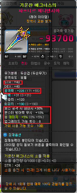 기본 추가옵션 마추옵65 보공12% 총뎀4% 올텟5%짜리 상급 무기입니다.ㅎㅎ(잠재는 보지마셈ㅡㅡ딮빡 ㅂㄷㅂㄷ..)