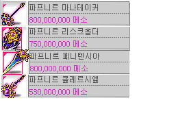 무기는 주문의흔적 100% 70% 30% 15% 작이 있으며 매지컬주문서(100%인데 15%작보다 약간좋음 1작에 10억)짜리가 있습니다.