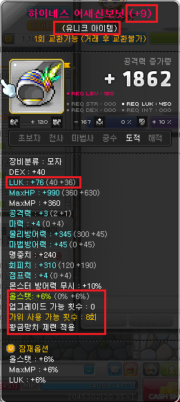법사는 인트/ 도적은 럭 /궁수는 덱스/ 전사는 힘 추가옵션만 보시면됩니다.(제논은 다보겟죠?)