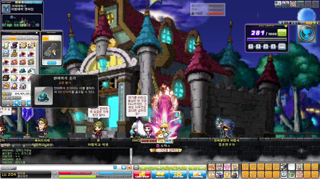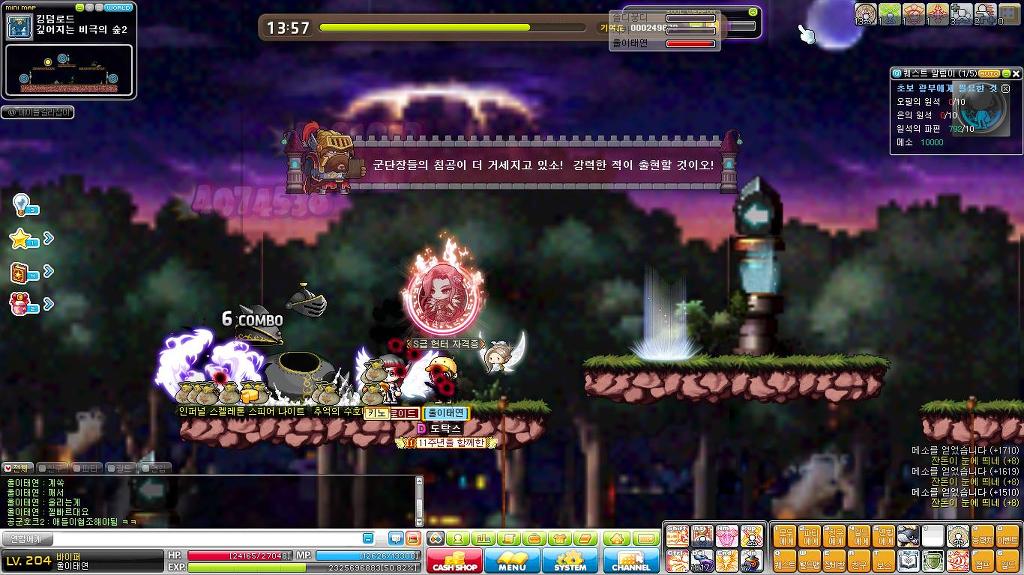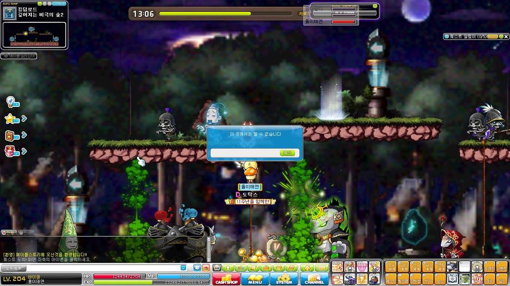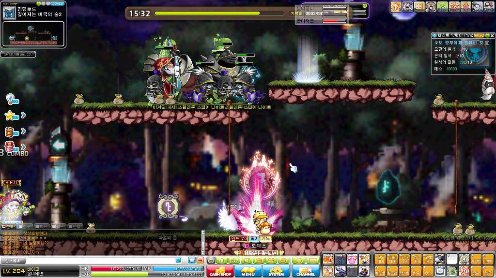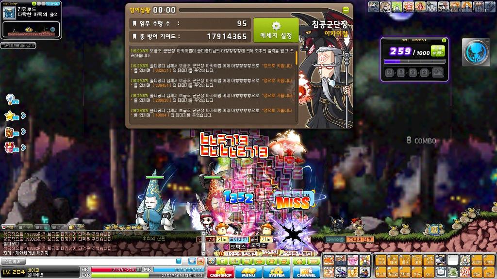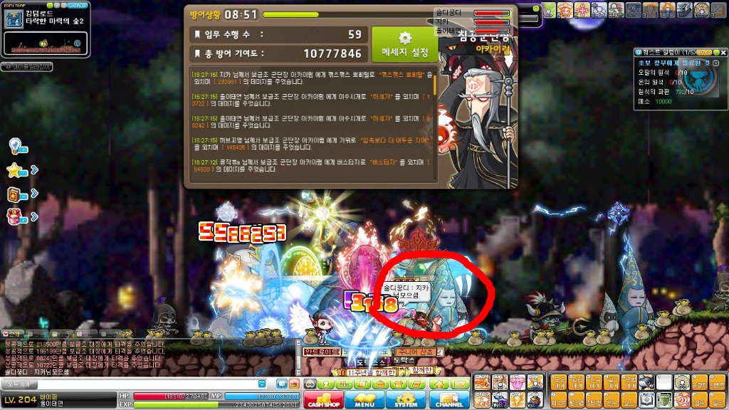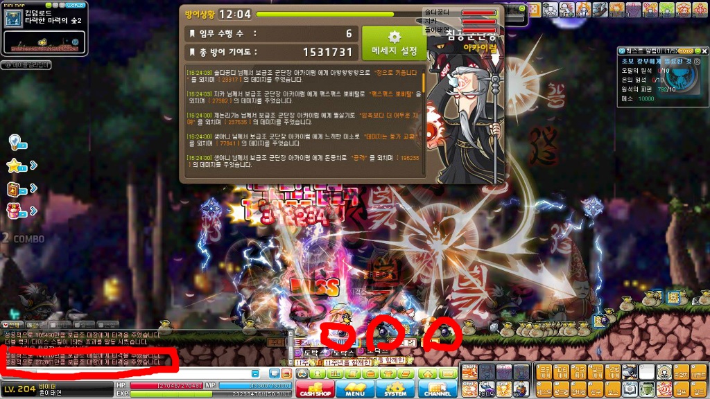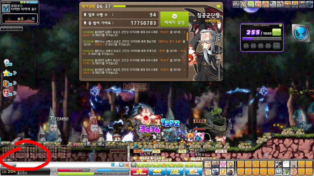 보시면 못 찍었던 몹들이 드랍하는 검은 구슬입니닼ㅋ 저걸 먹으면 저렇게 대화창에 타격을 준다면서 피가 깎이는 시스템입니다.
