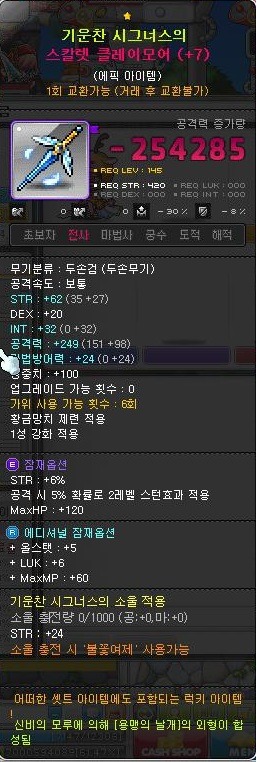 이 템은 공+98 7작 1성 잠재 공6퍼 소울 힘24