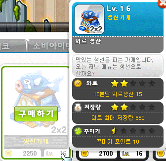 (스샷에선 버섯S등급 할인을 받아서 2250와르지만 실제론 2500와르입니다 - 버섯 상점에서 파는 물품 할인 효과)