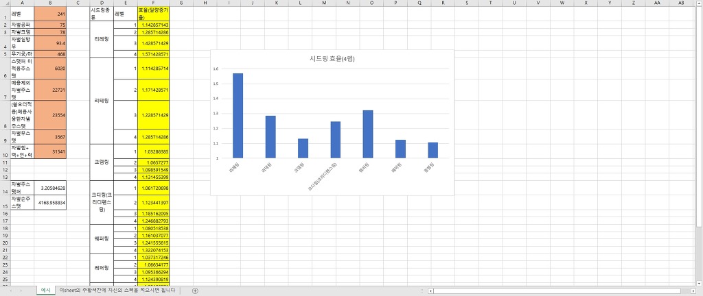 단순히 시드링끼리의 효율 계산이기 때문에 실전 효율은 직접 허수아비 패보세요!