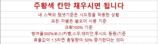 이렇게 엑셀창이 뜨는데 왼쪽 상단 주황색 칸에 수치 입력하시면 됩니다