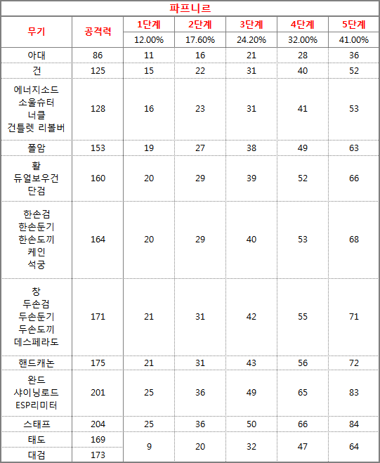 ※ 제로 무기는 타 무기류의 추옵 계산 공식을 따르지 않습니다.