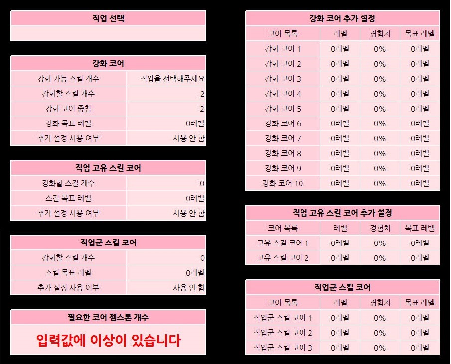 사진에 '직업군 스킬 코어 추가 설정'이 그냥 직업군 스킬 코어로 나와 있네요 그냥 알아서 봐주십쇼
