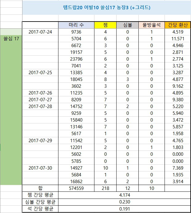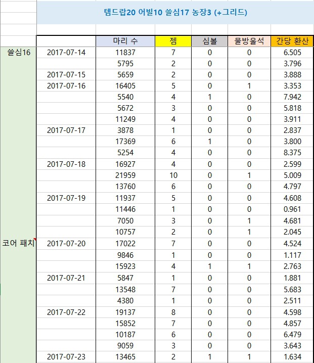 드랍 = 템20 어빌10 쓸심17 농장3 (심볼 그리드20+)