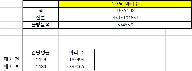 맨 아래에 패치 전후 간당평균 젬은 저번에 인소야 보니까 드랍률 잠수함 패치한거 아니냐는 글들이 보여서