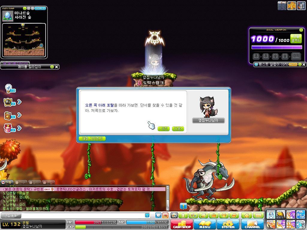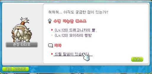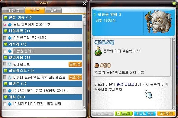 120레벨이 되면 리프레 촌장한테서 퀘스트가 뜹니다.