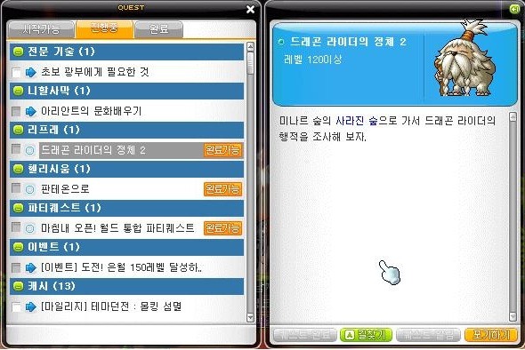 120레벨부터 할 수 있는 드래곤 라이더는 선행 퀘스트가 필요한 파티퀘스트죠
