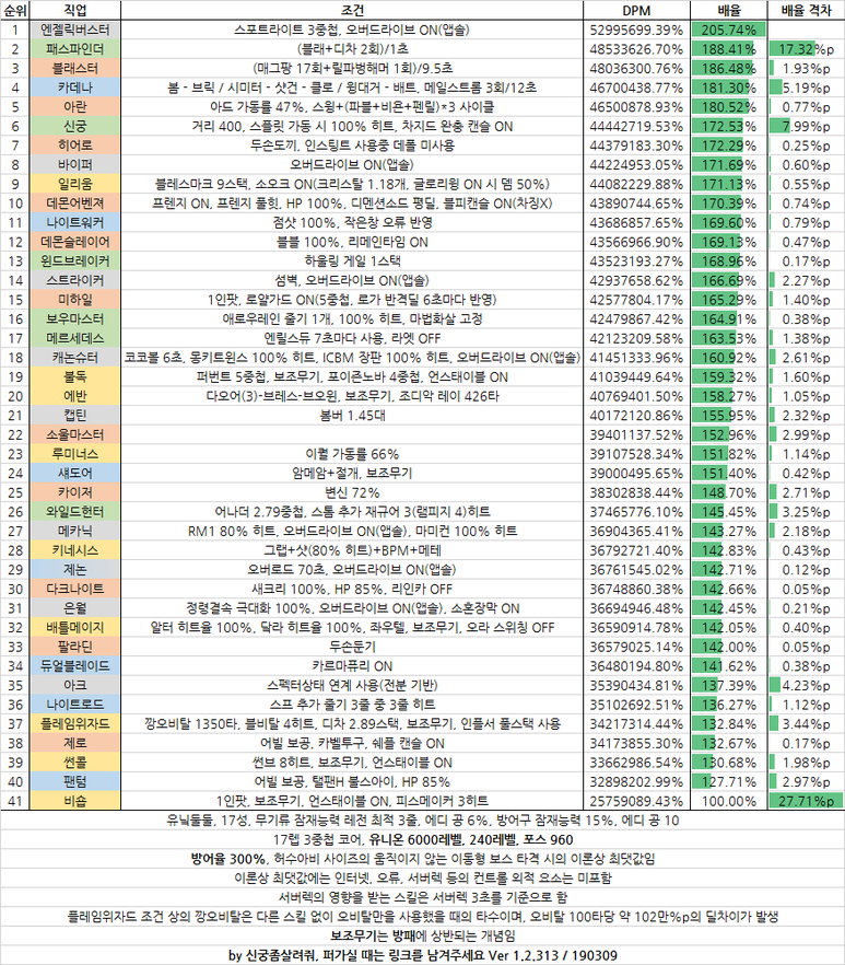 - 연계 직업 중 아크, 카데나, 블래스터, 패스파인더, 에반, 제로, 키네시스는 전투분석을 기반으로 하였으므로 이번에 발생한 딜레이 문제와는 관련이 없음