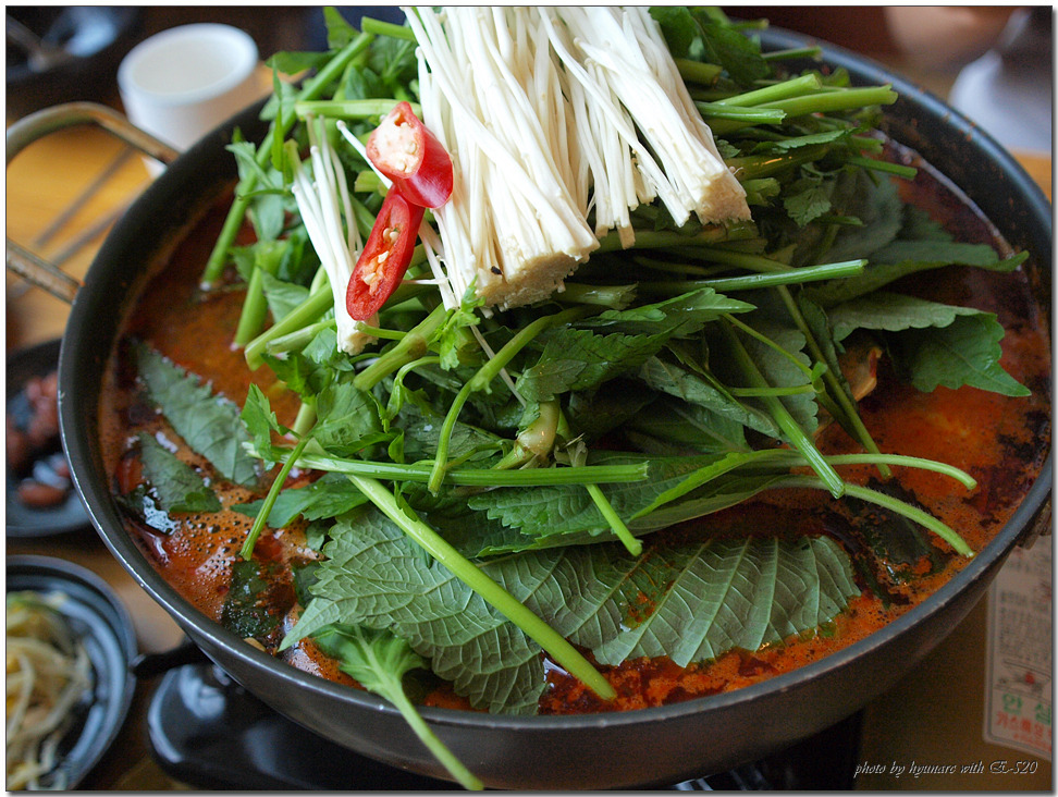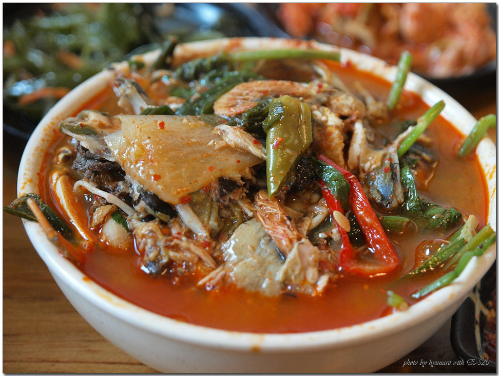 매운탕은 은근 매운편... 매기두마리와 참게가 보인다.