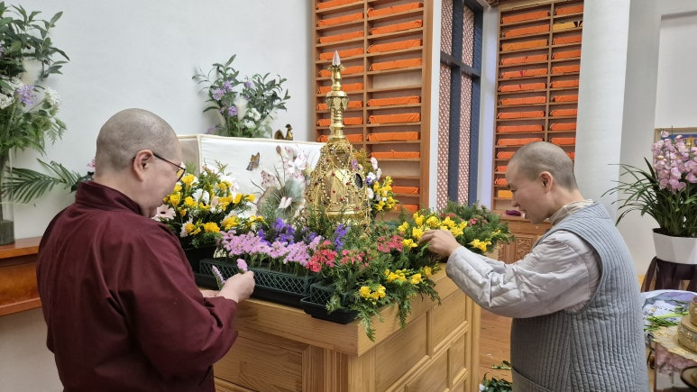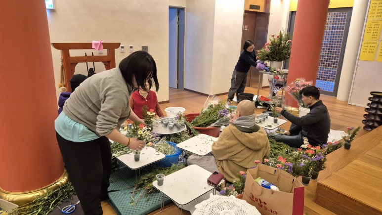 입재 전날에는 시장에서 사온 꽃들을