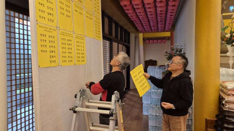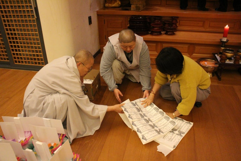 종무소 직원 2분이 열심히 수작업으로