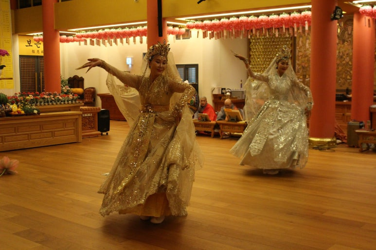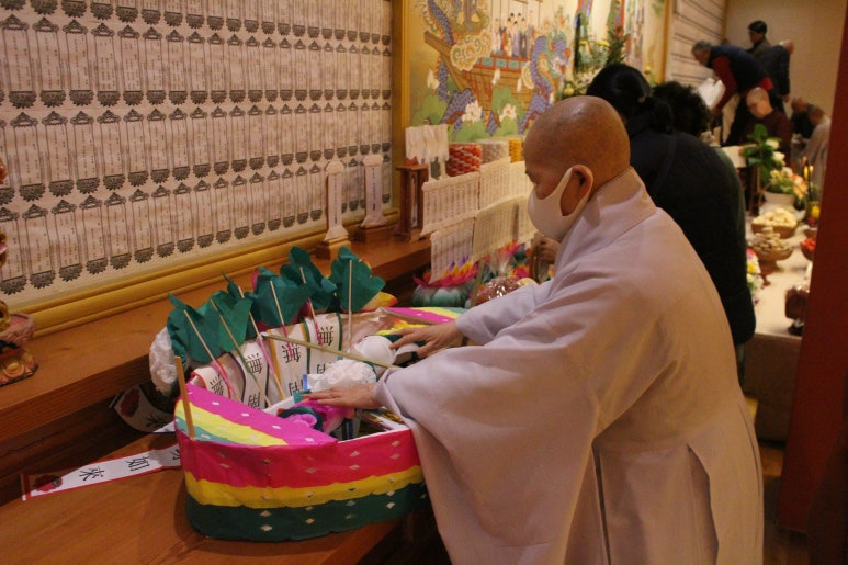 극락사 혜진스님 팀의 춤공양과 함께 벽면에 붙어있던 위패들을 회향합니다.