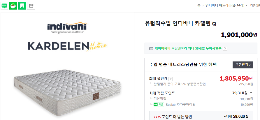 유럽명품 인디바니 매트리스
