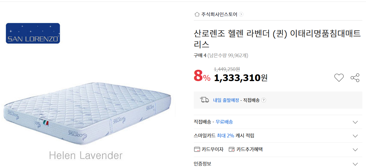 한국에서 가장 많이 팔린 이태리 명품 매트리스