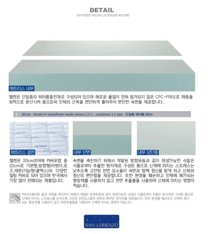 이태리 직수입 명품 산로렌조 헬렌 라벤더 매트리스