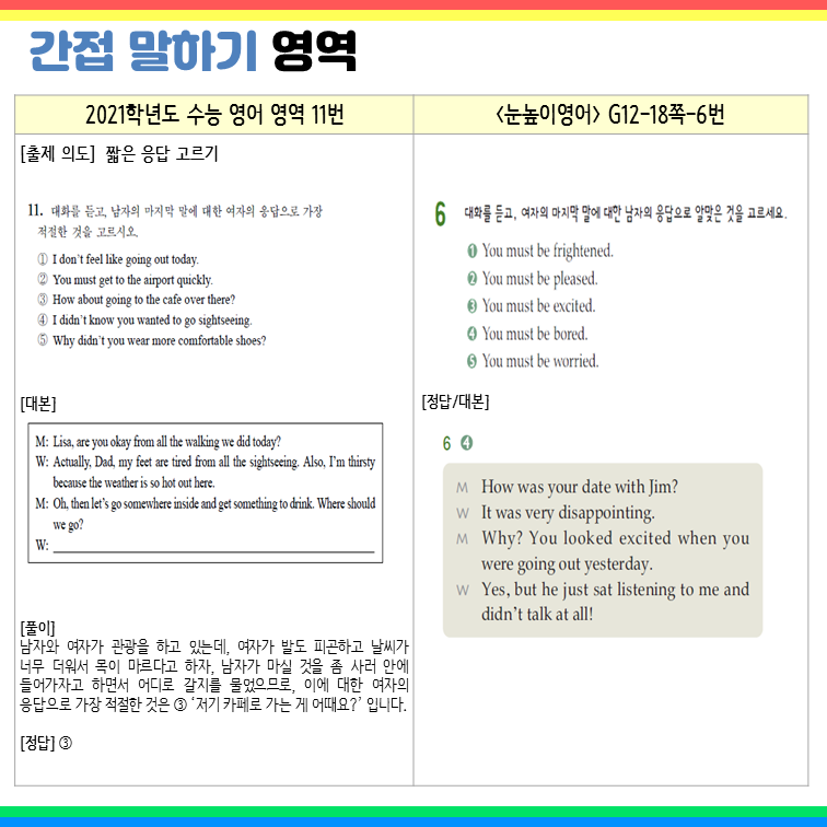 간접 말하기 영역의 ‘짧은 응답 고르기’ 유형으로