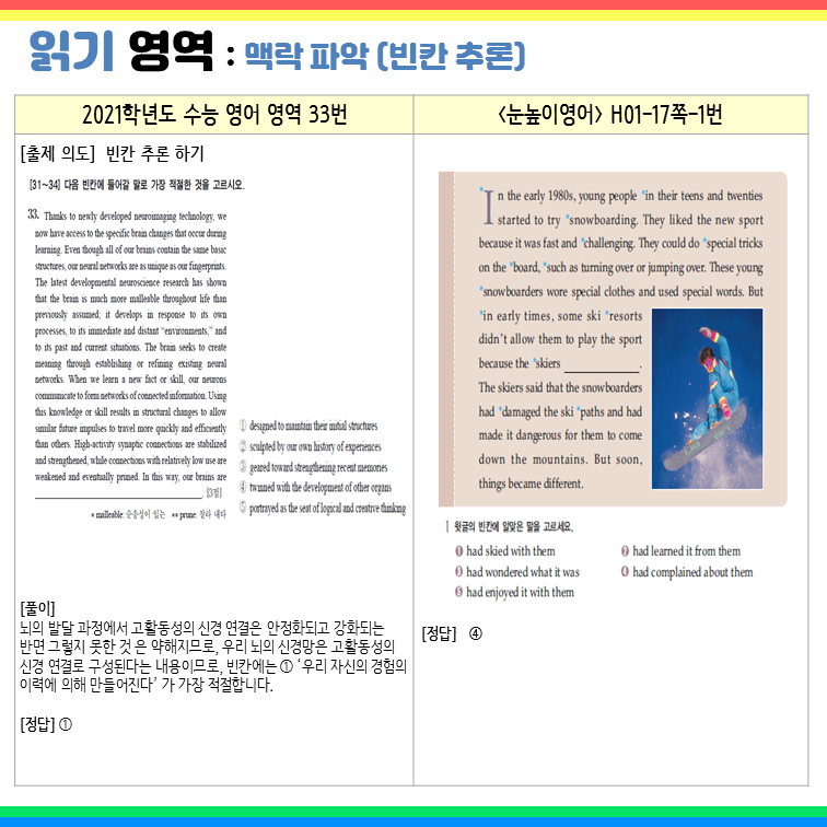 3) 읽기 : 맥락파악(빈칸추론)