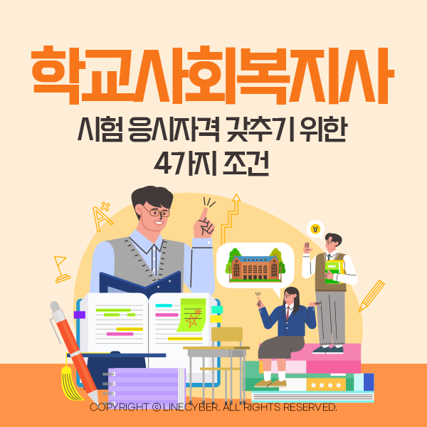이렇게 4가지 조건을 갖추었다면 이제 학교사회복지사 시험을 응시하실 수 있습니다.