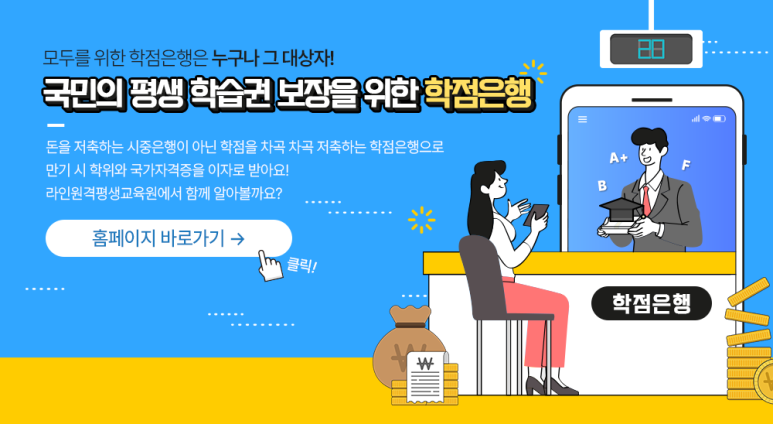 하지만 이미 대학을 졸업한 분들은 학점은행제 라는 교육제도를 통해서 과목을 이수한 후