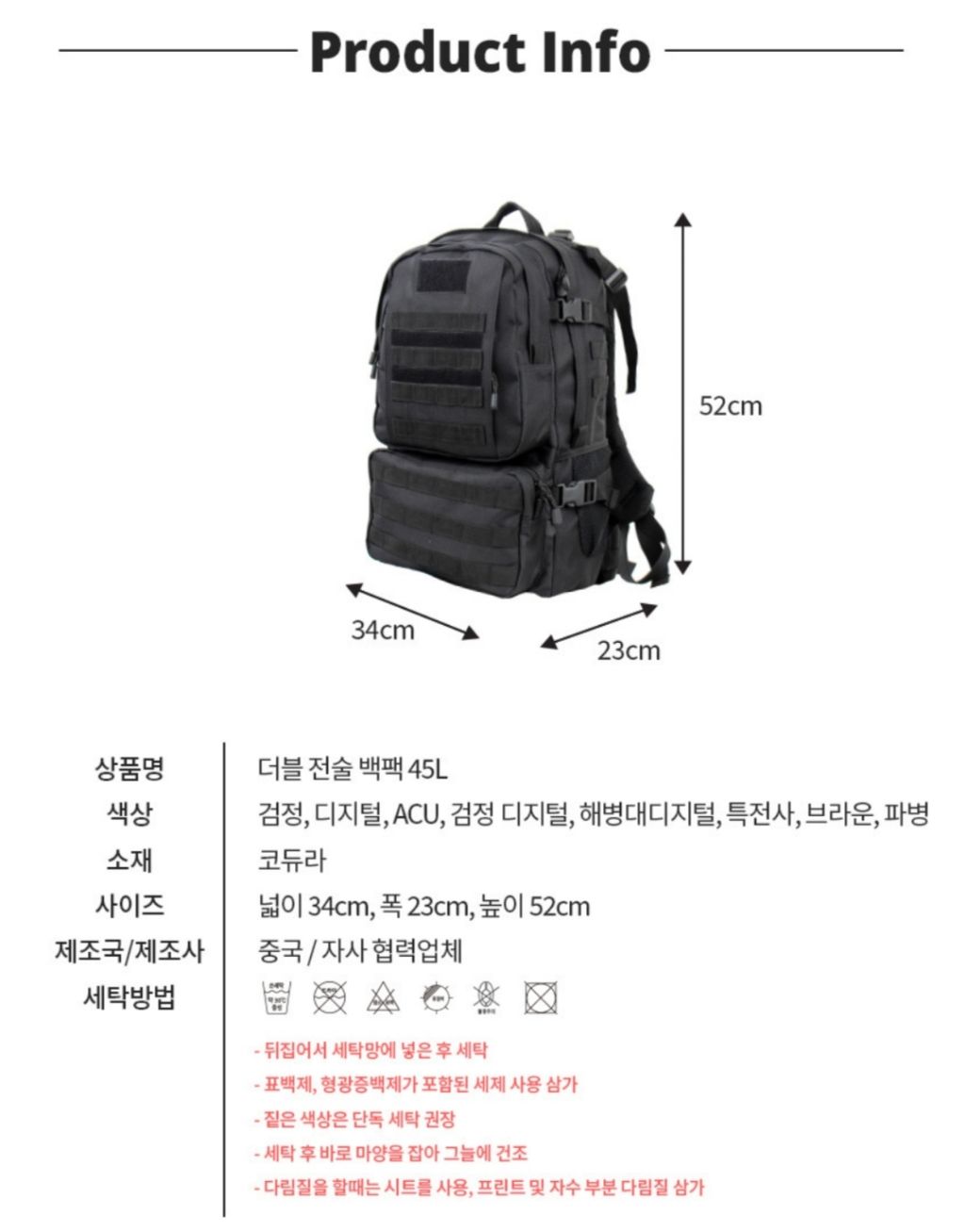 더블 전술 백팩 45L