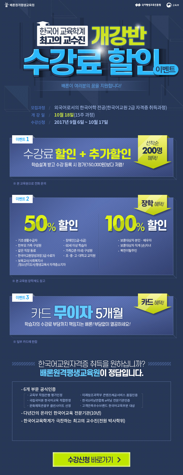 ■ 개강: 2017년 10월 18일(수) * 10월 17일까지 수강신청 가능