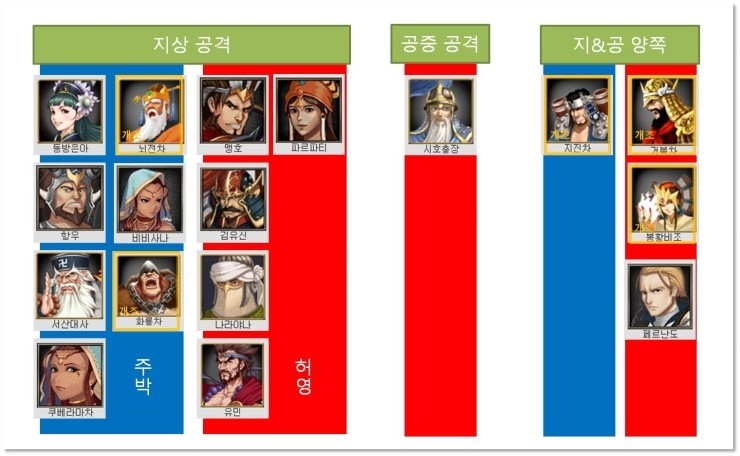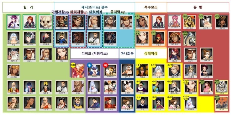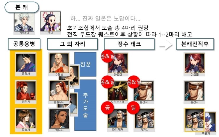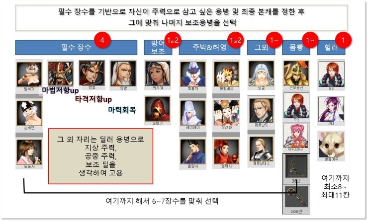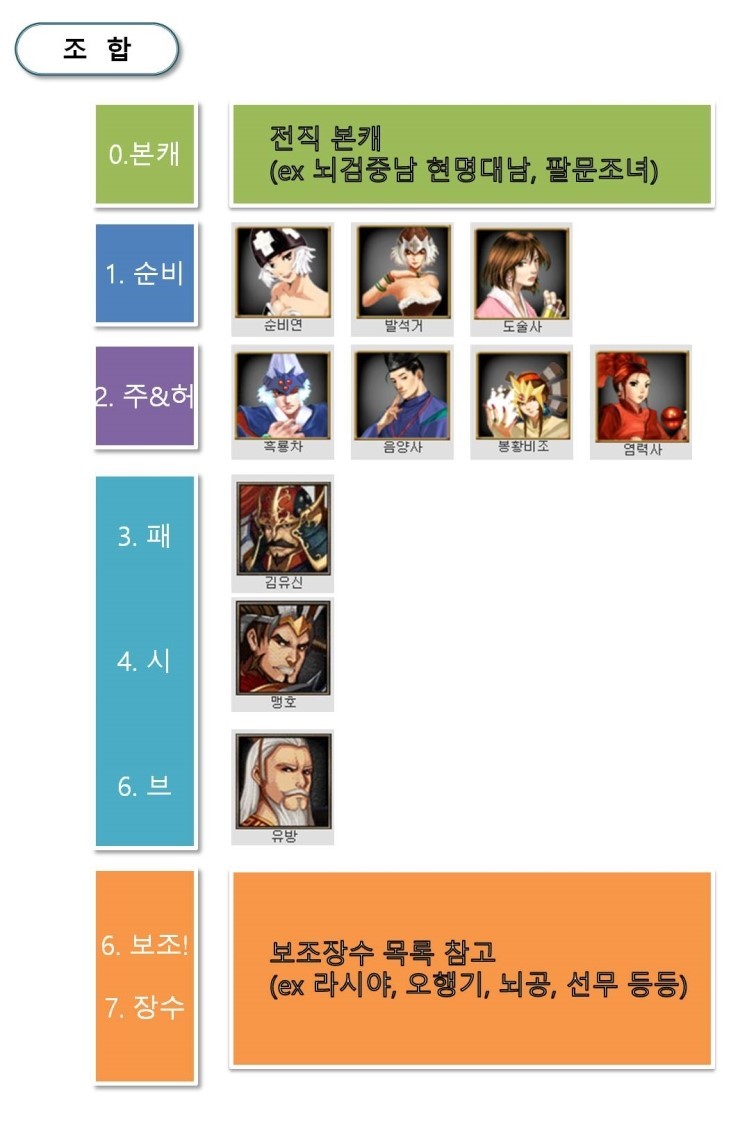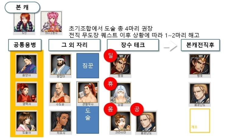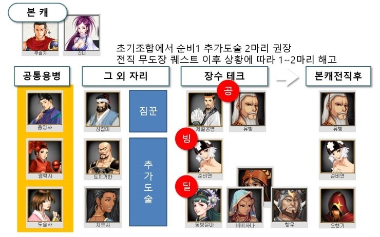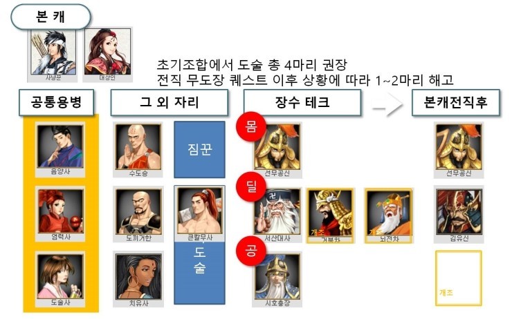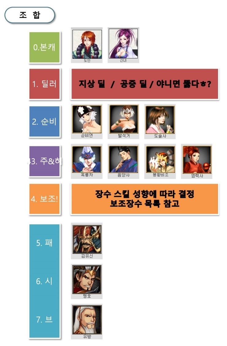 그외에는 딜러 장수에 맞춰 보조장수를 선택해 조합