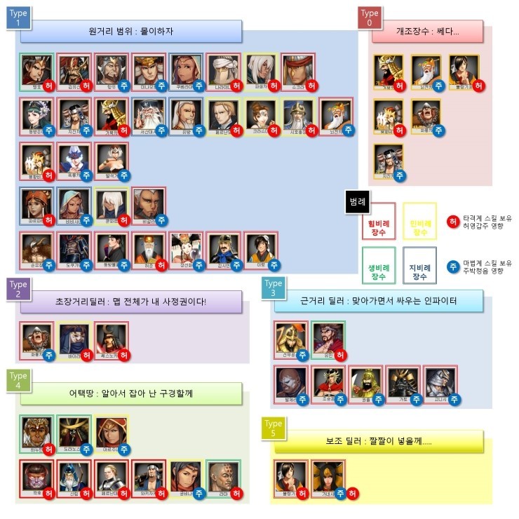 스킬별 타,마법계 분류는 아래 장수조합 사진 참조하거나 거상짱 사이트 참조