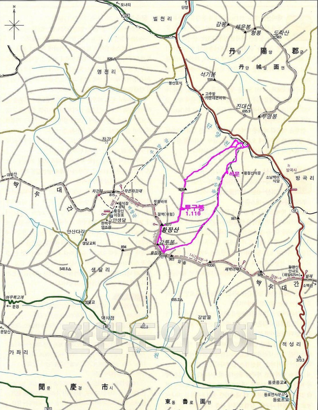 탐방루트 :  문암골 입구 - 옥녀탕 삼거리 -  가래구미골 - 740 - 투구봉 -