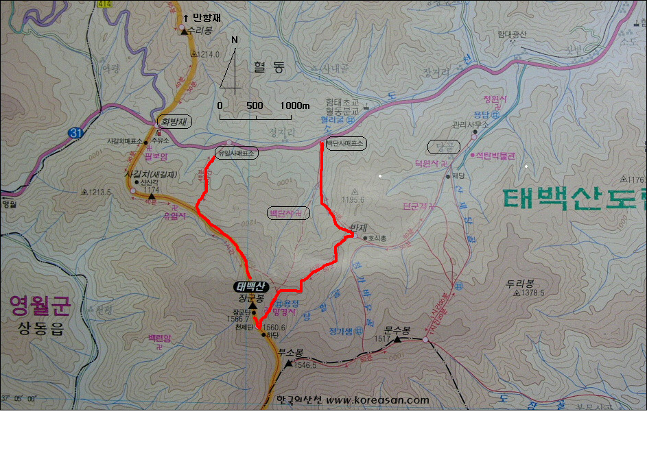 탐방루트 : 백단사매표소 - 반재삼거리 - 망경사 - 천제단(인증샷) - 장군봉
