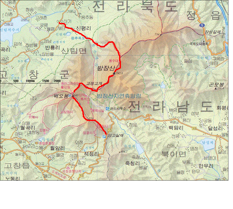 방장산(인증샷) - 고창고개 - 벽오봉 - 별봉 - 양고살재