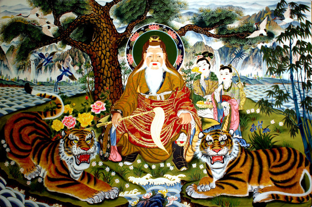 『삼국지』 「위서」 동이전 예조에서는 “항상 10월에는 하늘에 제사를 지내는데 밤낮으로 술 마시고 노래하며 춤을 추었다. 이를 무천(舞天)이라 한다. 또 호랑이를 신으로 여겨 제사한다”라고 기록하고 있다. 『오주연문장전산고』에는 호랑이를 “산군(山君)이라 하여 무당이 진산에서 도당제를 올렸다”고 한다. 오늘날의 산신도에서 흔히 볼 수있듯이 호랑이를 산신과 연결하고 있는 것이다. 호랑이를 지칭하는 명칭도 산신(山神), 산령(山靈), 산군(山君), 산신할매, 산중호걸 등 산과 관련시켜 부르고 있어 산의 주인으로 인식하고 있음을 알 수 있다.