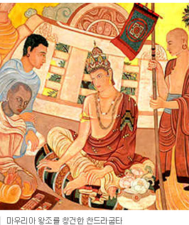 아소카왕은 한문으로 번역된 불전(佛典)에는 아육왕(阿育王) 또는 아수가(阿輸迦)로 기록되어 있다. 아소카왕은 불사리를 8만4천 개로 나누어 제국 각지에 탑파(塔婆)를 세운 것으로도 유명하다. 8만4천 개라는 숫자에는 과장이 있는 것으로 여겨지지만, 이를 통해 아소카왕은 제국과 주변 지역으로까지 불교를 보급시키는 데 큰 역할을 했다. 불교 전설이나 설화의 중요한 소재가 되기도 하는 아소카왕은 고대 인도 종교와 신화에서 세계를 통일, 지배하는 이상적인 제왕, 즉 전륜성왕(轉輪聖王)의 이상을 충족시킨 인물, 즉 세속의 전륜성왕으로도 일컬어졌다. 전륜성왕은 무력이 아닌 정의와 정법(正法)으로 세상을 다스리는 제왕이기도 하다. |
