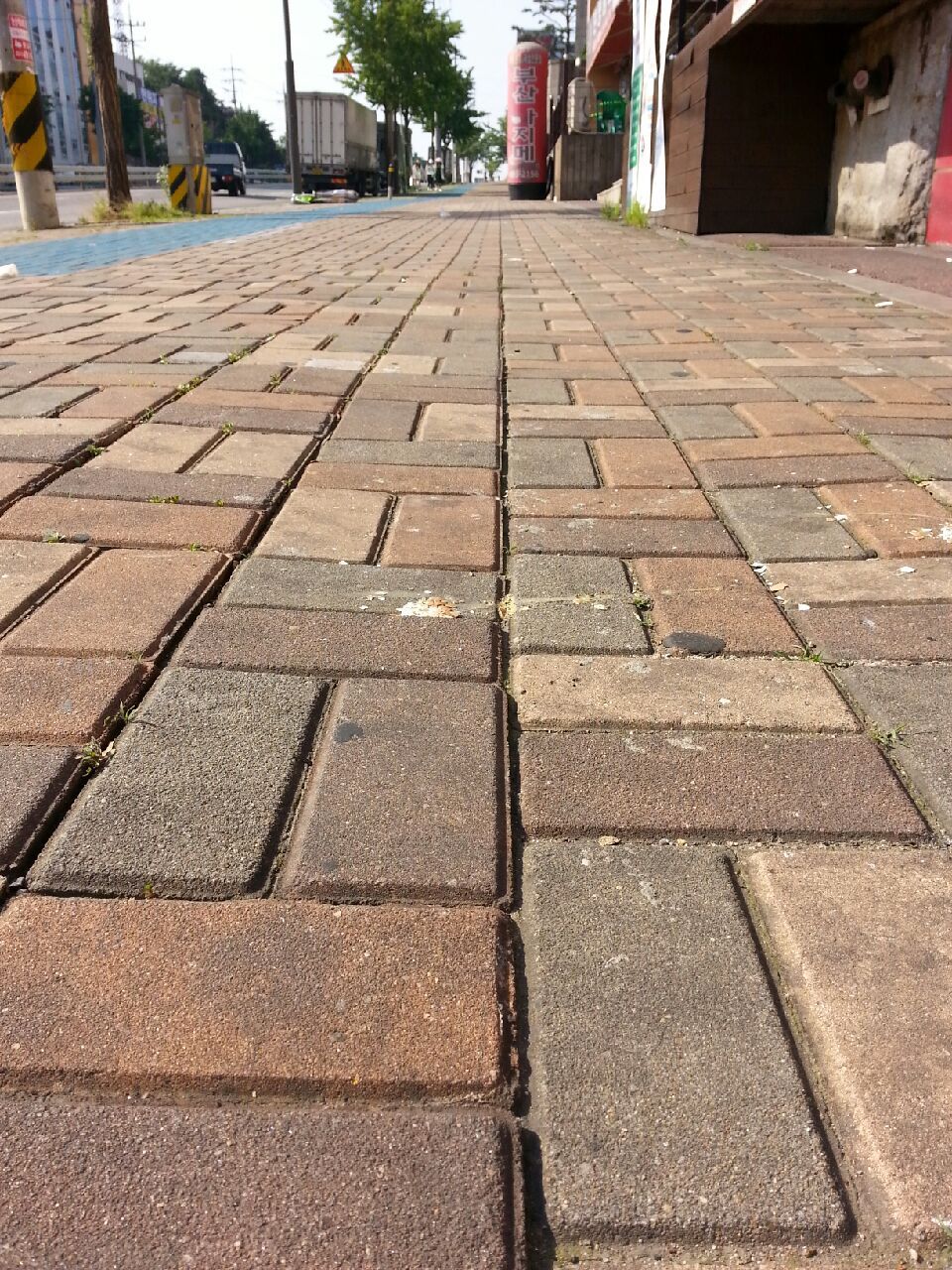 블럭사이에 턱이 생겨 보행자을 위협합니다