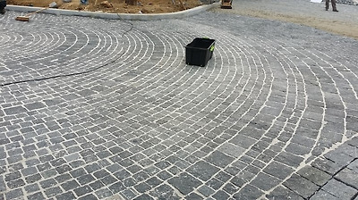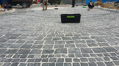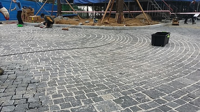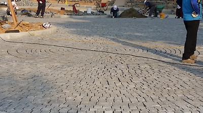 사고석포장이 100짜리와 200짜리 를 혼용하여 사고석포장 패턴이 잡혀 있어서 무지하게 고생하면서 시공하고 있습니다.