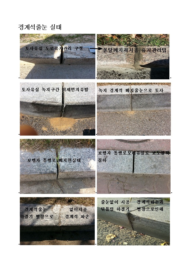 경계석 파손으로 이어지며 경계석이 올라오고 넘어지는 뒤틀림으로