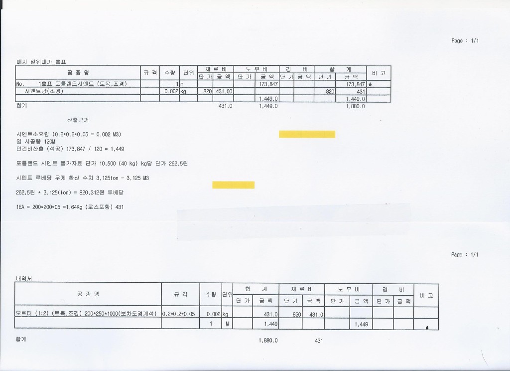 모르타르 메지 200*250 설계 단가 (LH. 1.800....일반 설계.1.900) 확인 해보세요