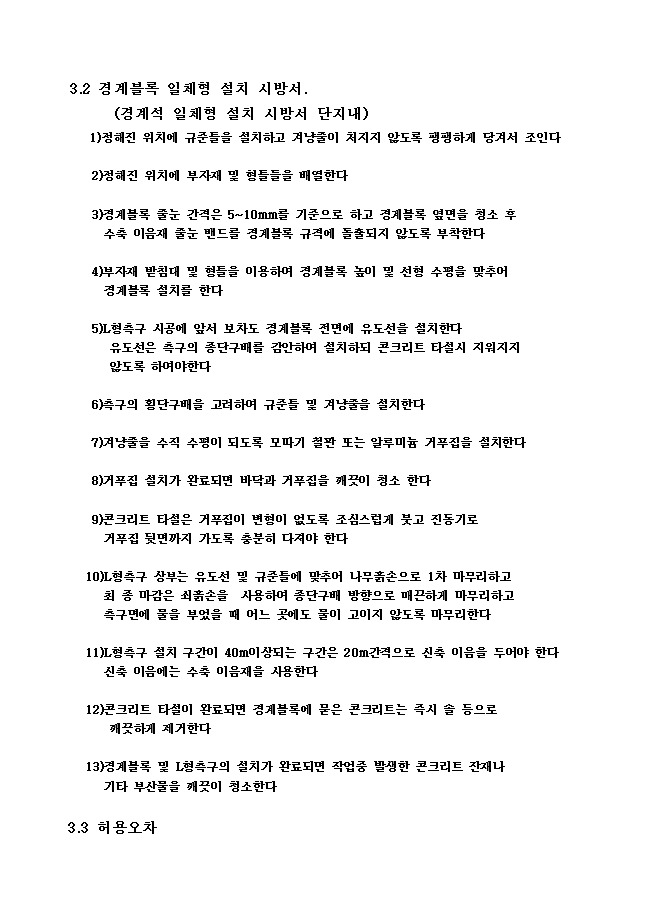 가. 경계블록의 줄눈간격은 5~10mm를 기준으로 기준으로 하며. 규정된 줄눈