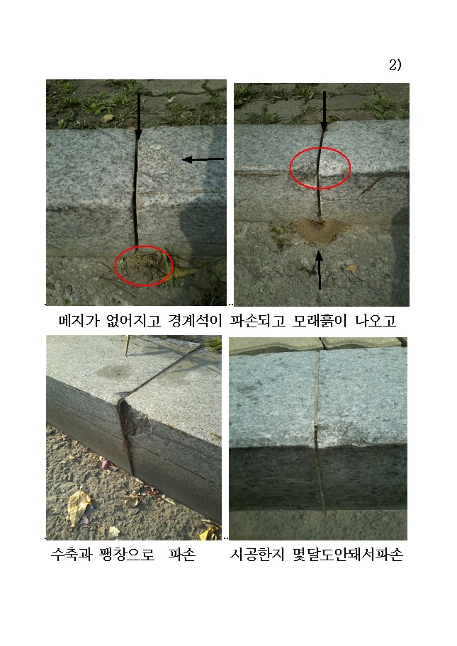 경계석 메지 간격이 잘못 될경우 경계석 파손