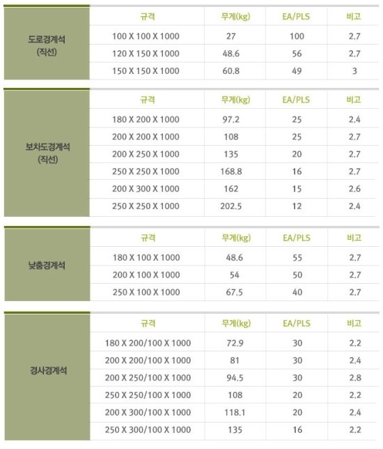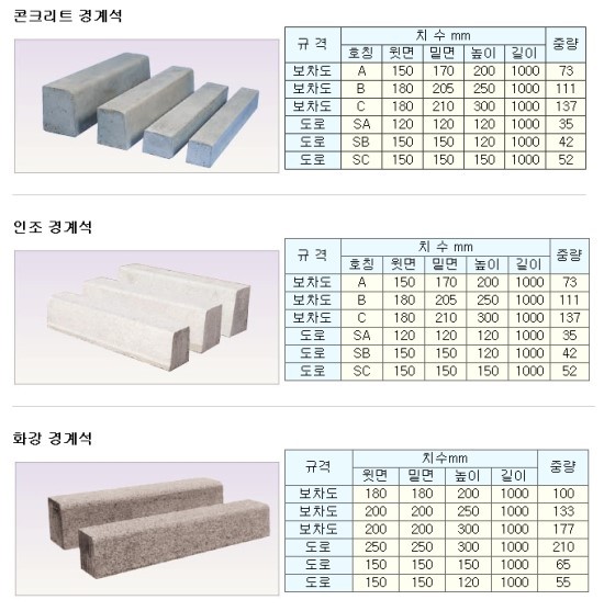 경계석 보도블럭 화강블럭 경계석 부자재도 전시