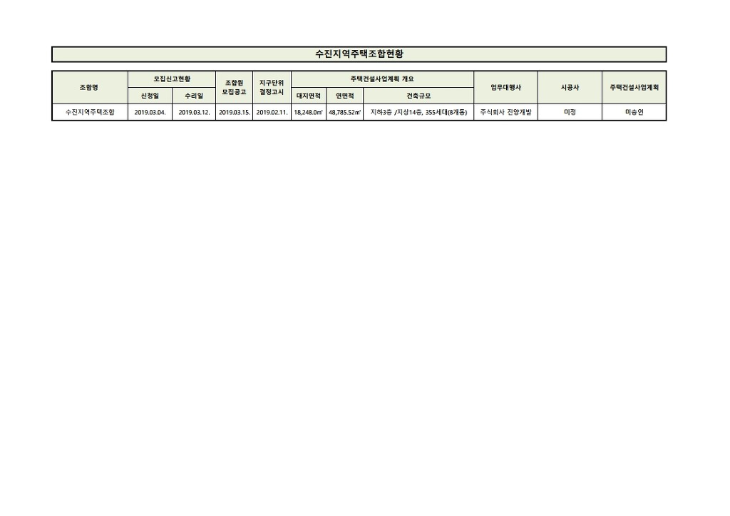 수진동 4781번지 일대 지역주택조합 추진 절차 관련 행정정보공개를 청구합니다