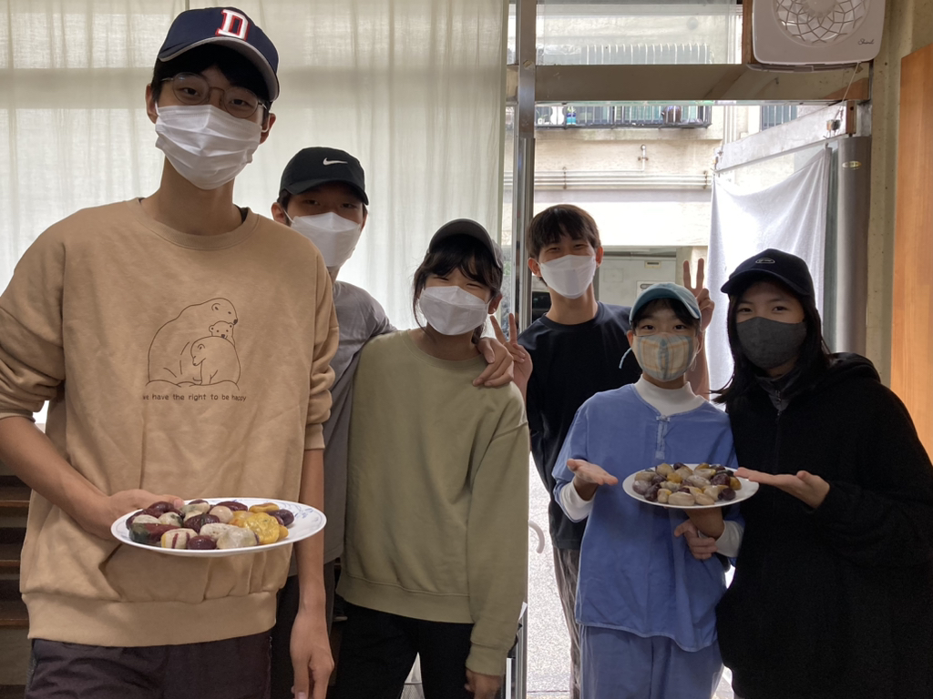 한가위 맞으며 빛알찬중학교 학생들이 선생님들과 송편을 만들어 점심밥상에 오신 분들과 나누었어요.