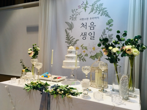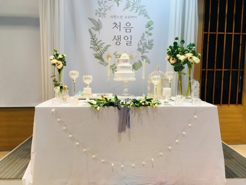 우리 서윤이의 돌상은 1단 화이트돌상 + 포토테이블 + 1MC를 꿈풍과 함께했습니다!😆