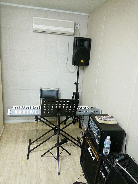 드럼, 베이스기타, 일렉기타2대, 건반이 구비된 합주실