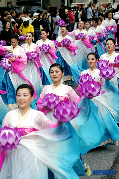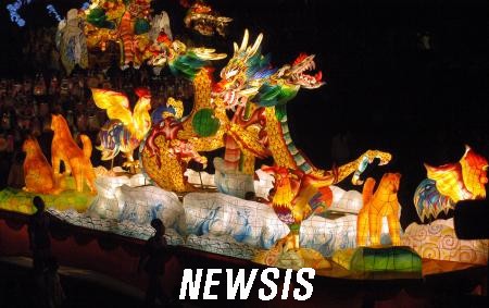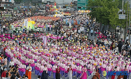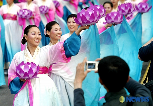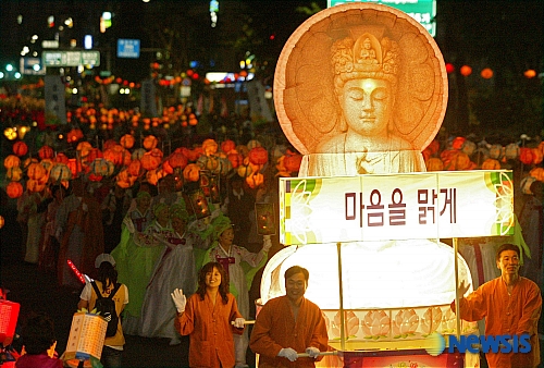 ▲ 등을 들고 연등축제 공연을 관람하는 모습